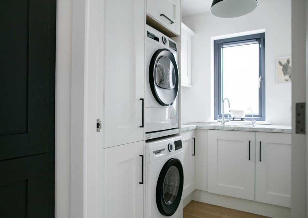 Stacked appliances in the utility room