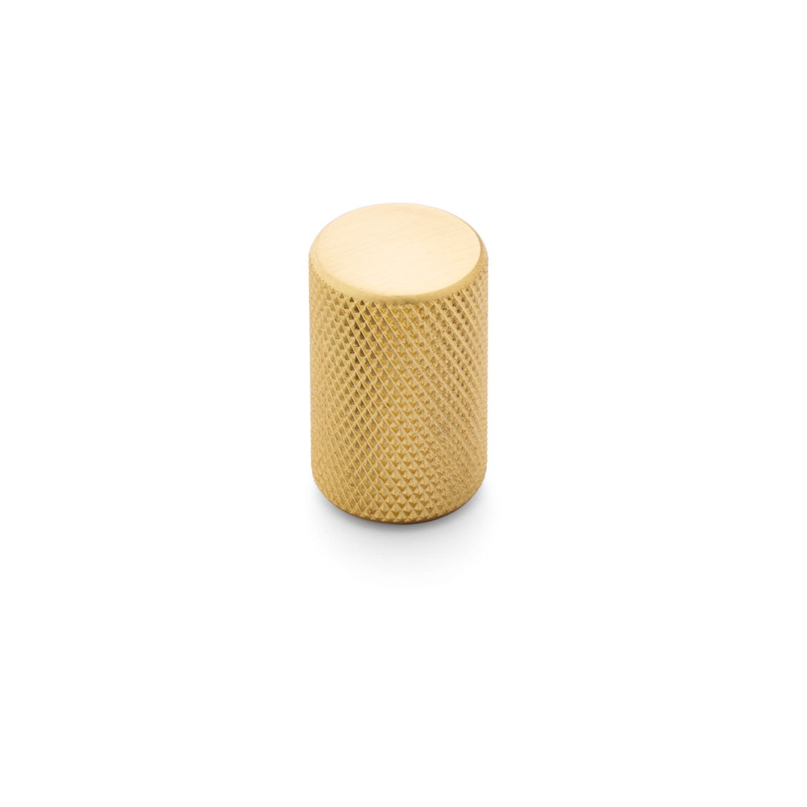 A brass knob with metallic finish and knurled effect, 28mm in depth, ideal with Hampton, Augusta and Savana kitchens.