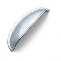 Lyndale Chrome Cup Handle – Elegant yet practical, the Lyndale Chrome Cup Handle features a square plate design that complements traditional cabinetry with modern precision. Its subtle pewter finish adds depth and texture, making it an ideal match for classic kitchen styles that favor clean lines and understated charm. 96mm DBC.