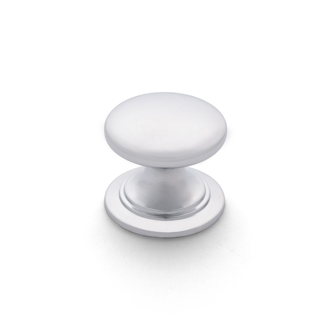 Windsor Chrome Knob #74 – Large circular rose shape for a timeless look. 38mmX34mm depth.