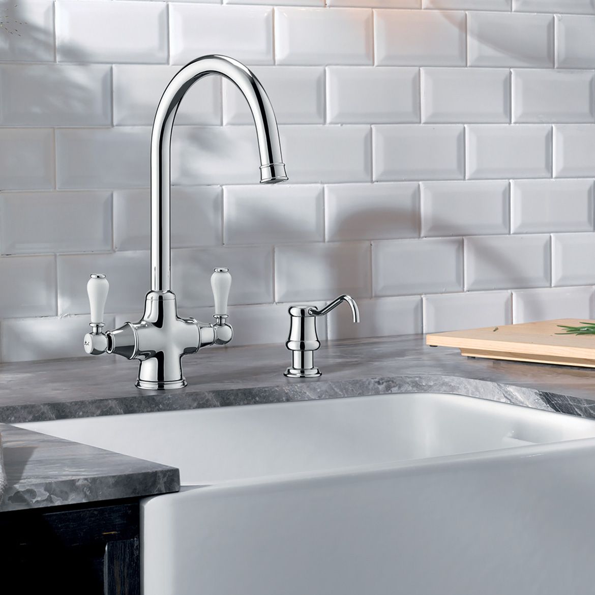 Classic design with modern functionality, high quality ceramic seals and cartridge for extremely long-lasting operation. Available in four different finishes.